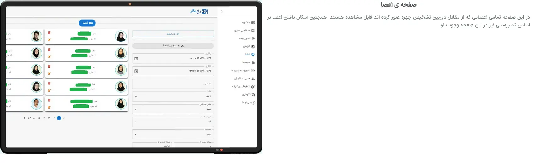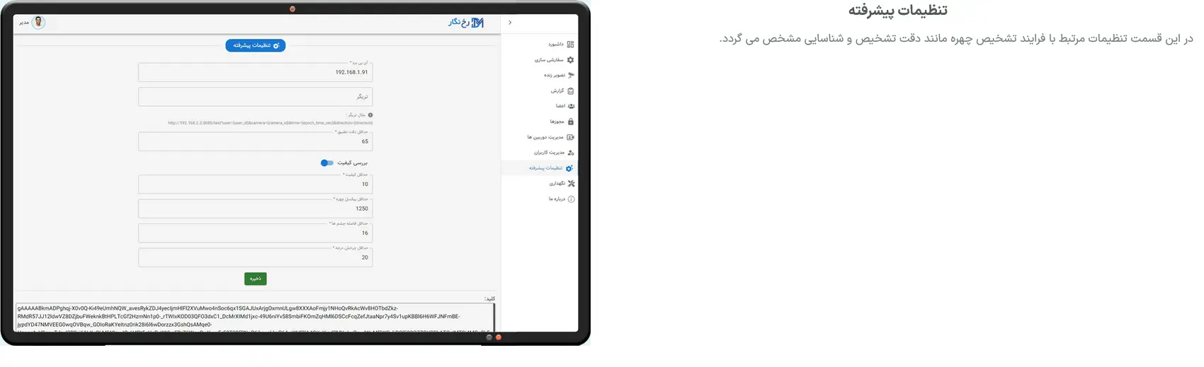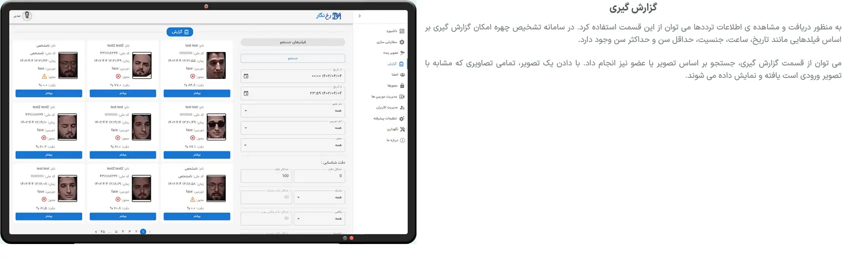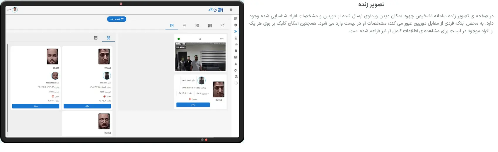 ویژگی های رابط کاربری نرم افزار تشخیص چهره پرایم سیستم