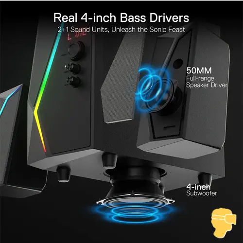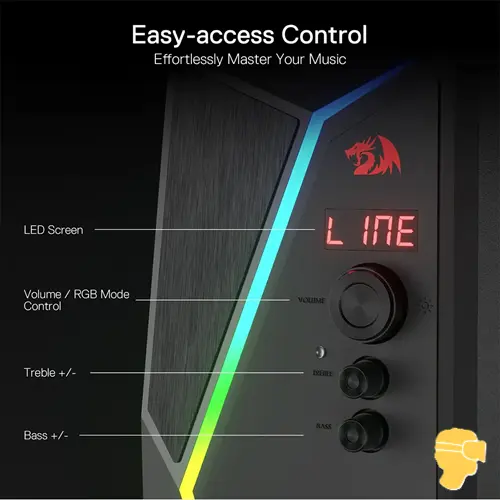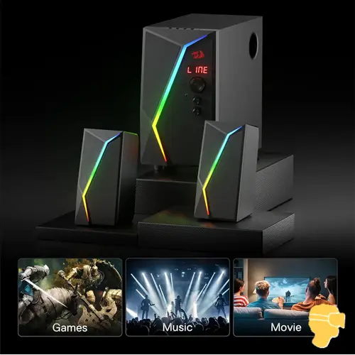 اسپیکر GS520 PRO، اولین اسپیکر ۲.۱ کاناله از برند Redragon، با یک سابووفر ۴ اینچی با قدرت ۲۵ وات و دو اسپیکر تمامفرکانسی ۵۰ میلیمتری با توان ۱۰ وات، صدای بینظیری را ارائه میدهد. این سیستم صوتی قدرتمند، بیس قوی، میانردهای کامل و تریبل شفاف را به ارمغان میآورد و تجربهی شنیداری داینامیک و شفافی را برای شما به ارمغان میآورد که شما را در دنیای صدا غرق میکند.