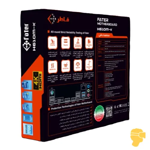 مادربرد فاطر مدل Fater H610M-K DDR4 با فرم فاکتور Micro-ATX و سوکت LGA1700 از پردازنده‌های نسل ۱۲ و ۱۳ اینتل پشتیبانی می‌کند.