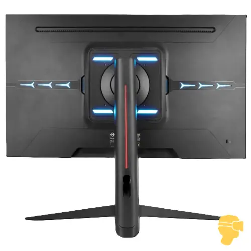 بدنه محصول از پلاستیک مقاوم و مات ساخته شده است که علاوه بر استحکام، از بازتاب نور جلوگیری میکند و تمرکز کاربر را حفظ میکند. پایه دارای حفره مدیریت کابلهاست و ابعاد کلی ۶۱۴ × ۳۶۵ × ۳۰ میلیمتر، حمل و جابهجایی آن را آسان میکند. نورپردازی RGB در پشت مانیتور نیز جلوهای جذاب برای ستاپهای گیمینگ ایجاد میکند.