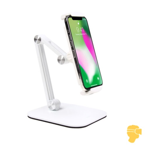 پایه نگهدارنده موبایل WMH010برند Ergotech با قابلیت تنظیم ارتفاع و زاویه ی تبلت و موبایل در موقعیت های متفاوت بسته به نیاز کاربر و پایداری در تمامی زوایا به واسطه استفاده از پایه فلزی مقاوم و وزن کم محصول، مناسب کسانی است که به واسطه شغل و فعالیت نیاز به شرکت در جلسات و برگزاری کلاس های آنلاین دارند.