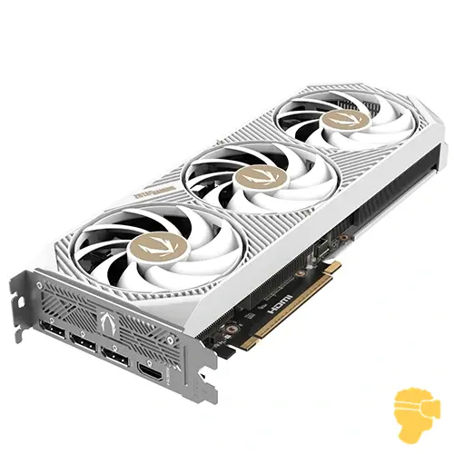 خروجیهای تصویر شامل سه درگاه DisplayPort 2.1 و یک درگاه HDMI 2.1 هستند که امکان پشتیبانی از نمایشگرهای نسل جدید را فراهم میکنند. توان مصرفی کارت حدود ۲۲۰ وات است و برای عملکرد پایدار، منبع تغذیهای با توان حداقل ۶۵۰ وات توصیه میشود. سیستم خنککننده IceStorm 3.0 با دو فن بزرگ، دمای کارت را تحت کنترل نگه میدارد و طراحی سفیدرنگ مینیمال با نورپردازی LED ملایم در لوگوی ZOTAC، ظاهر مدرنی به کارت میبخشد. ابعاد جمعوجور این مدل، آن را به انتخابی مناسب برای اسمبل در کیسهای متوسط و حتی کوچکتر تبدیل کرده است.