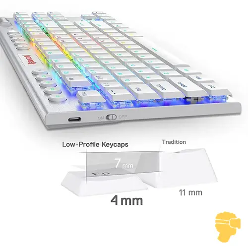 ۸۷ کلید با ارتفاع کمتر و طراحی زیبای حاشیه کم در اطراف کلید ها باعث ایجاد فضای بیشتری برای حرکت ماوس می شود. قابلیت کوتاه بودن این کلید ها مطلقا باعث نمی شود که عملکرد پایین تری ارائه داده شود و تنها کار با کلید ها بسیار راحتتر می شود.
