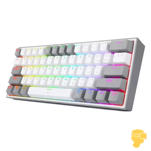 صفحهکلید Redragon K617 یک کیبورد زیبا و کاربردی و با صرفه است که یا سیم و کابل تایپ C متصل می شود. ۶۱ کلید فوقالعاده فشرده و جمع و جور و با حداقل اشغال فضا یک میز مرتب را به شما می بخشد. حداکثر ۲۰ حالت از پیش تعیین شده نور پس زمینه توسط خود صفحه کلید قابل تنظیم می شود. روشنایی و سرعت نورها نیز توسط خود صفحه کلید مانند نور قابل تنظیم است. فقط کافی است که حالت بازی خود را انتخاب کنید تا از هماهنگی نورها در هنگام بازی لذت ببرید.