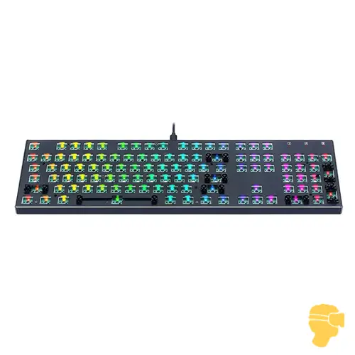 تماما قابل تنظیم : مونتاژ BBK556 بسیار آسان است. به لطف PCB ماژولار ۵ پین، این صفحه کلید Barebone با اکثر سوئیچ های مکانیکی ۳ پین و ۵ پین hot-swappable سازگار است. طرح استاندارد ۱۰۴ کلید ANSI به طور گسترده با کلاهک های مکانیکی در بازار فعلی سازگار است.